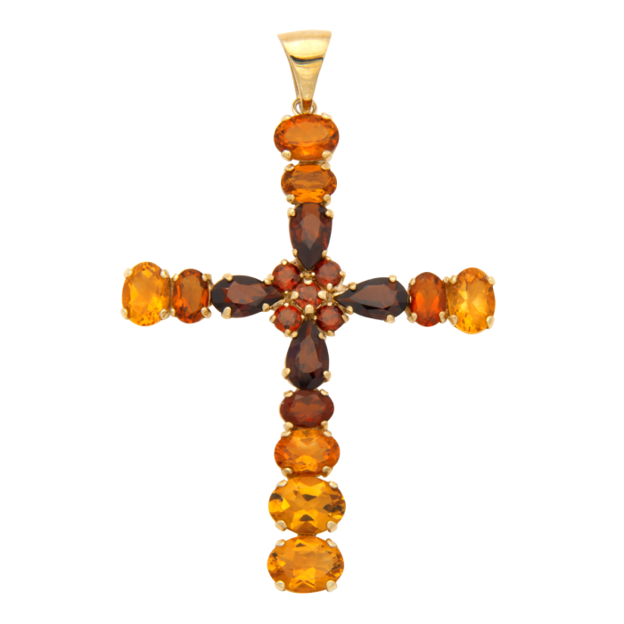 Wundervoller Kreuzanhänger mit Granatsteinen und Goldtopase