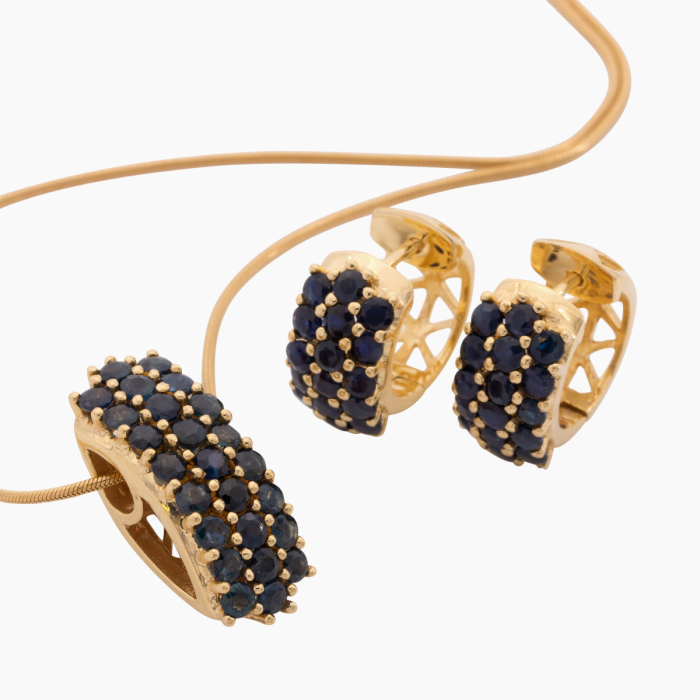 Wundervolles Set – Anhänger mit Kette und Creolen – besetzt mit Saphiren