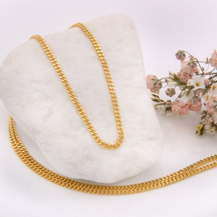 Halskette in zarter Flachpanzergliederung, 45 cm lang und in 8 karätigem Gelbgold gearbeitet.