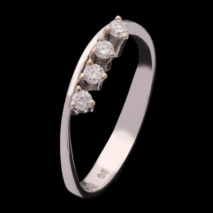 Schauseitig funkeln 4 Brillanten in Krappenfassungen, welche seitlich an der Ringschiene befestigt sind.